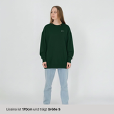 Unsere Sweatshirts haben eine lässige Passform mit längeren Ärmeln, sitzt insgesamt eher oversized und fällt dadurch größer aus. In deiner normalen Größe sitzt das Sweatshirt oversized – bitte beachte die Größentabelle. Nutze gerne auch unseren Größenfinder. Es besteht aus 100% Baumwolle (Bio-Baumwolle) und wurde unter fairen und nachhaltigen Bedingungen hergestellt.